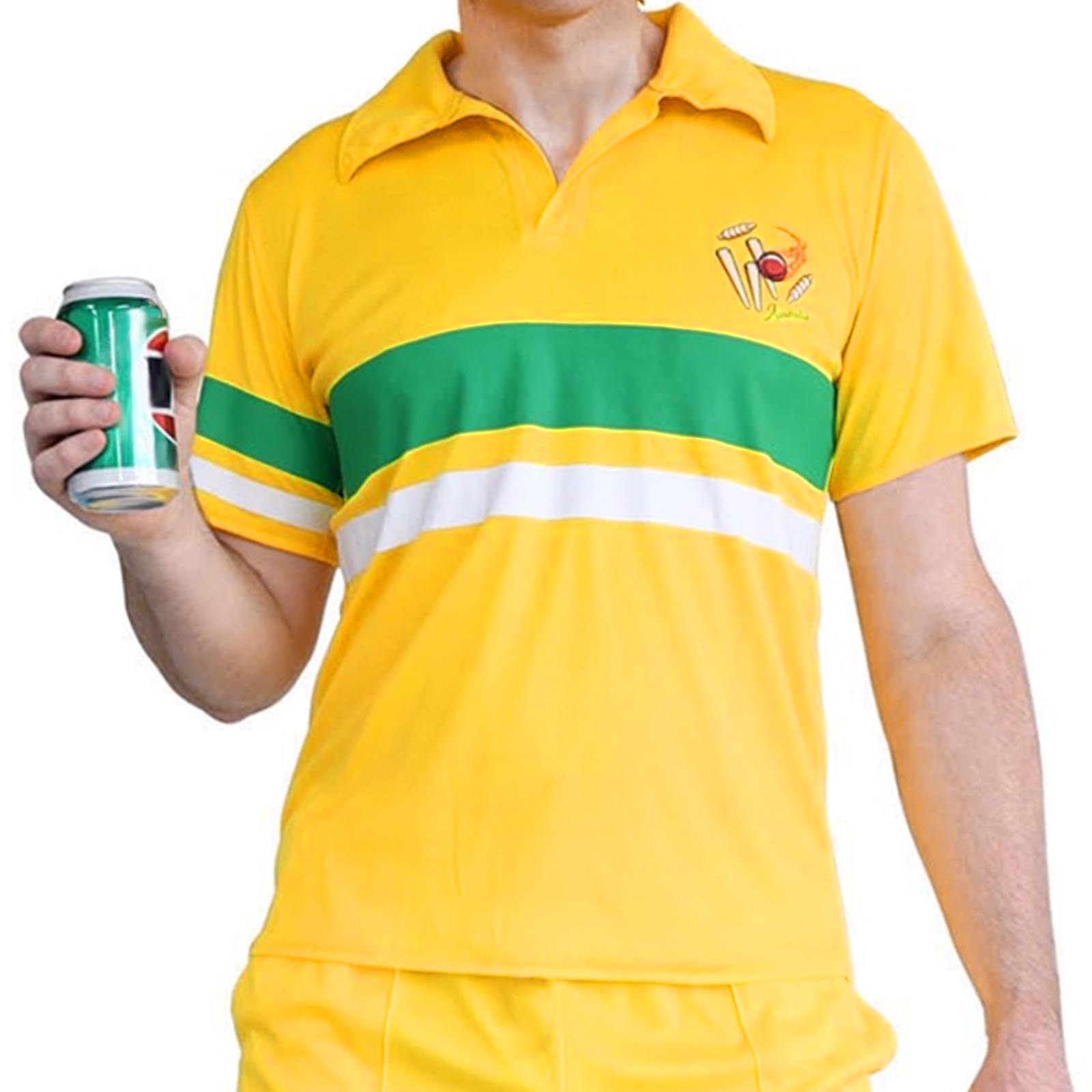 Go for a hundred in this Australian themed cricketer costume for adults. You can be your favourite 80s sports star in the classic gold top and pants for an Australia Day BBQ, fancy dress party or supporting the Australian Cricket Team at their next game. Add an iconic mo to complete the look.