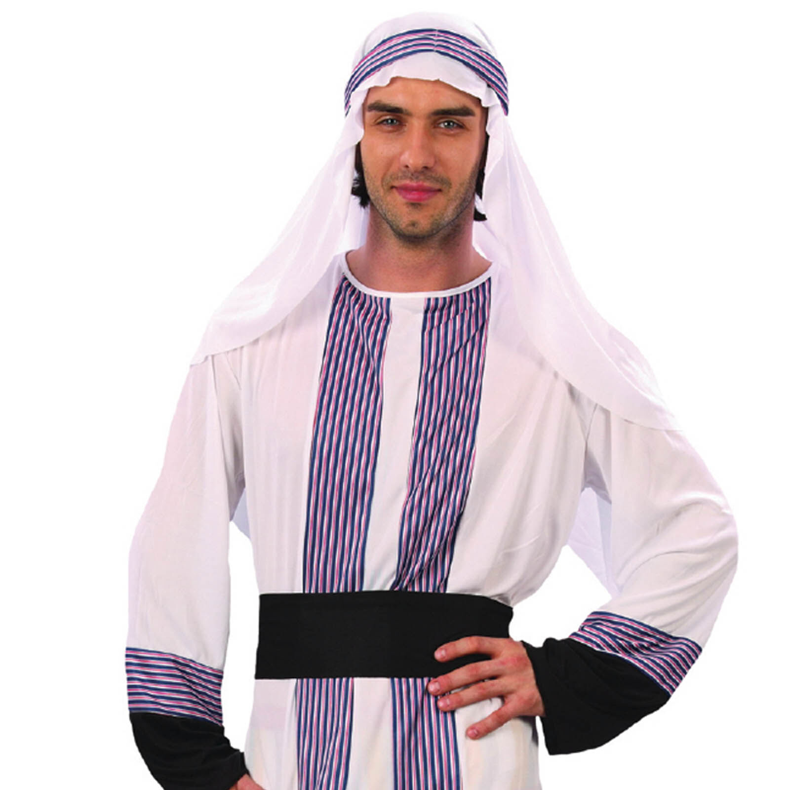 Ideal for international, movie, or biblical theme parties, this versatile costume can easily transform you into a wise man from a nativity scene, a mysterious desert traveller, or even a movie-style adventurer straight out of Lawrence of Arabia. Just add some sunglasses, a confident grin, and get ready to rule the sands (or at least the dance floor)!