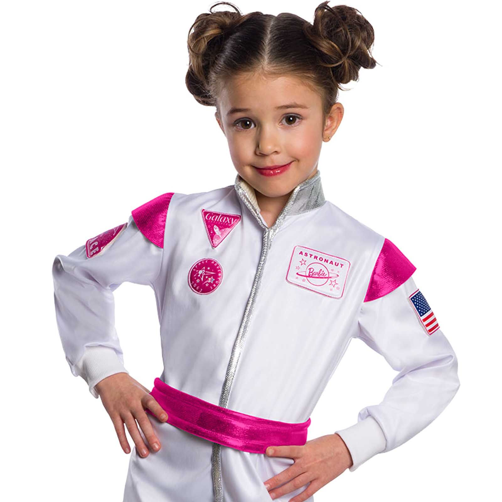 Barbie is the ultimate dress up character! The classic Mattel doll has been dressed by millions of children over the years not only in fashion outfits, but also occupations. This white, pink and silver child's costume is Barbie's version of an Astronaut suit. This awesome costume, with a dash of fabulous Barbie flair, is perfect for a Space, Occupations or 'What I Want to Be When I Grow Up' party or school dress up day.