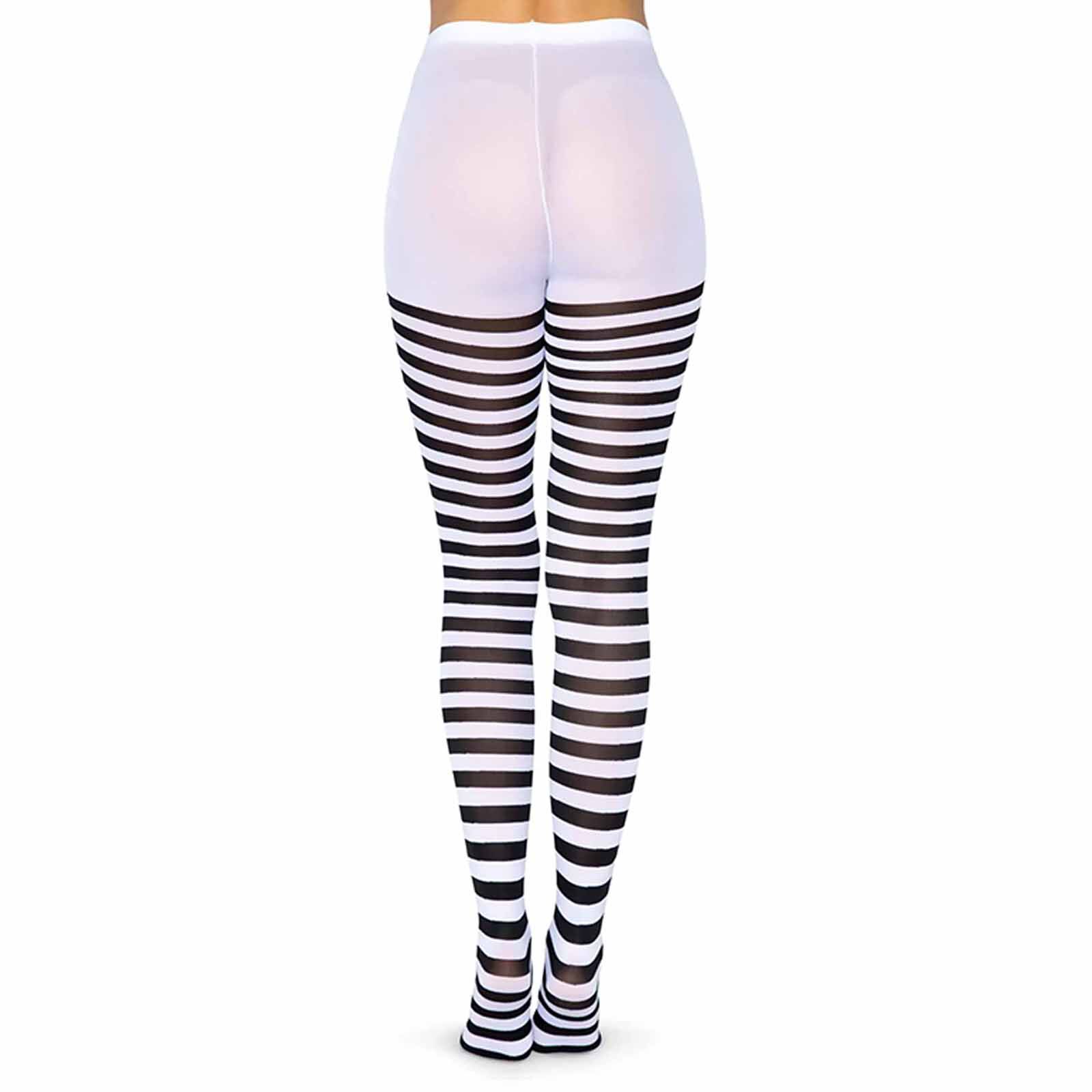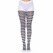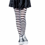 Featuring white and black stripes with an opaque look, these striped tights are perfect for an Alice in Wonderland character, Witch or Book Week costume. Easy to style and full of character, these adult striped tights are a versatile costume accessory that bring fun, charm and a touch of drama to any dress up look or themed event. Made from 66% nylon/33% polyester/1% spandex with a 75 denier.