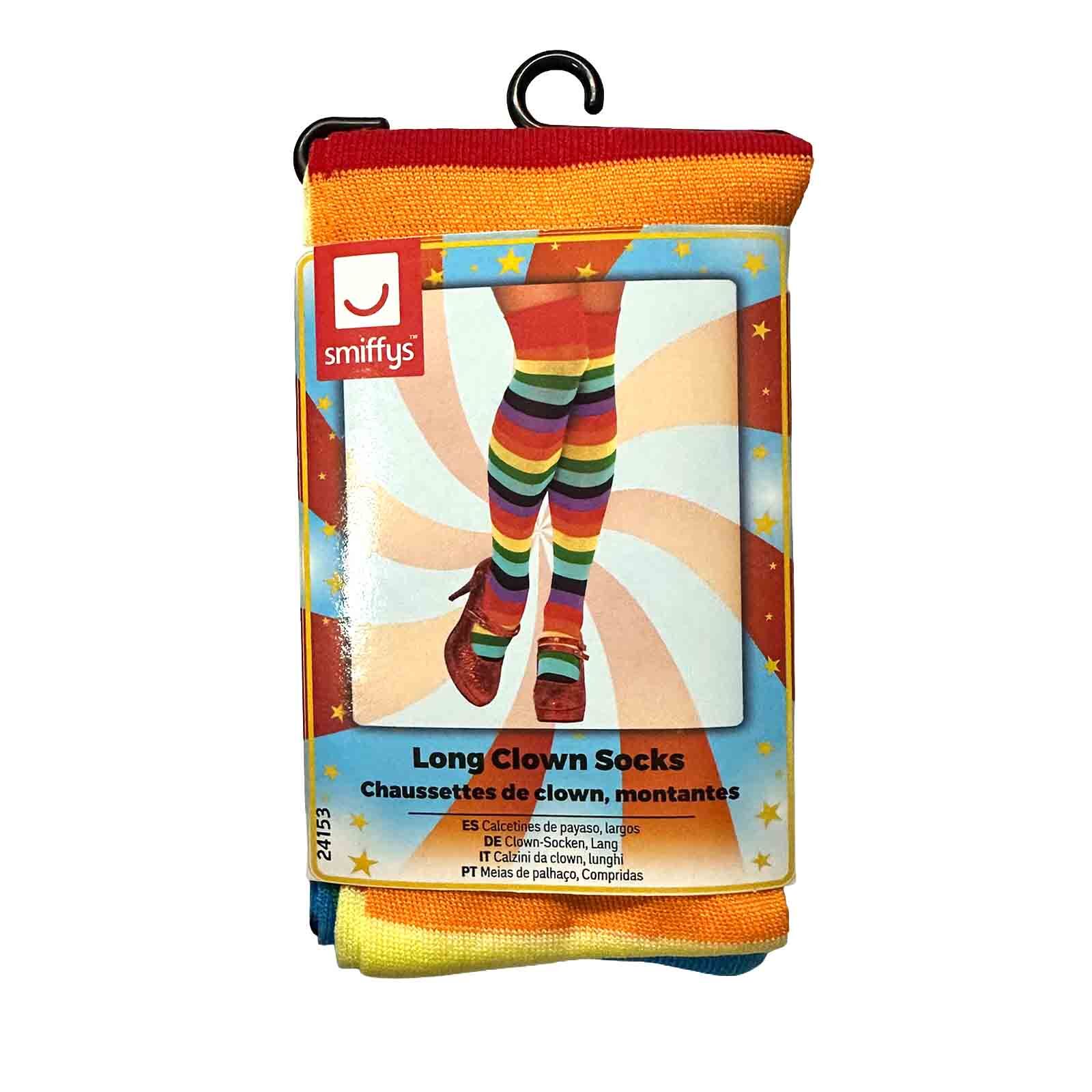 Brighten your look with these rainbow striped over the knee socks, featuring a soft knit finish that adds colour, comfort and playful style to any outfit. Made from 100 percent polyester, these long rainbow socks are perfect for Pride events, festivals, costume parties, retro looks, fun run outfits and circus clown dress ups. Ideal for creating a bold statement, adding a pop of colour or completing a vibrant costume, these rainbow over the knee socks bring instant fun and personality to any look.