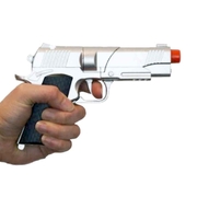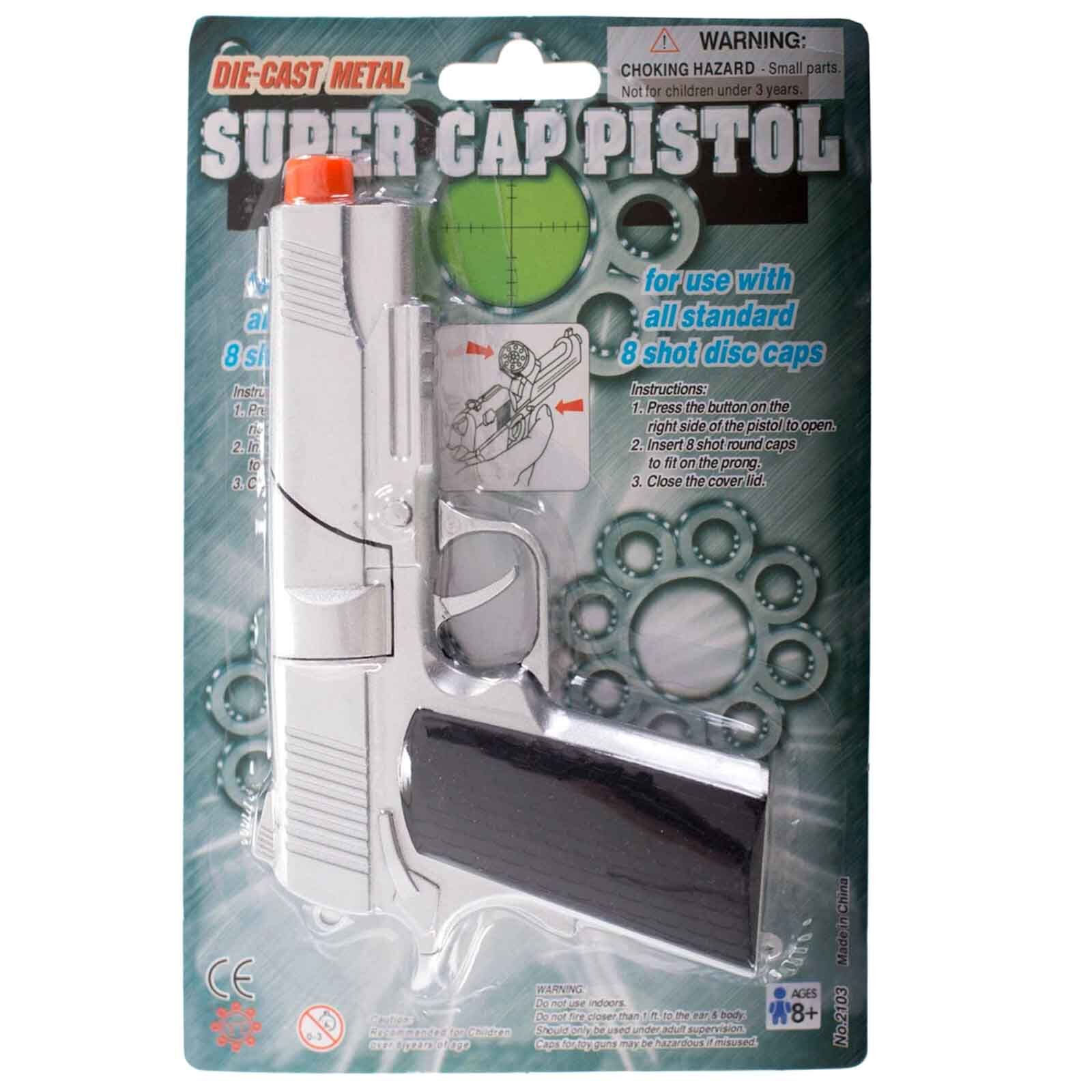 Lay down the law in style with this die-cast metal pistol cap gun! Whether you’re going undercover as a smooth secret agent, cracking cases as a sharp detective, or patrolling the party as a fearless police officer, this realistic costume accessory adds instant authority (and a little attitude) to your look.