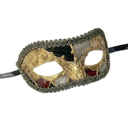 Embrace the mystery and glamour of the Venetian style with this elegant Luciana Masquerade eye mask. The colours used in this particular mask are perfect for gentlemen wanting some darker tones along with metallic shine. Equally, this mask could be used by the ladies wanting a more masculine feel to their mask accessory for a ball or Mardi Gras.