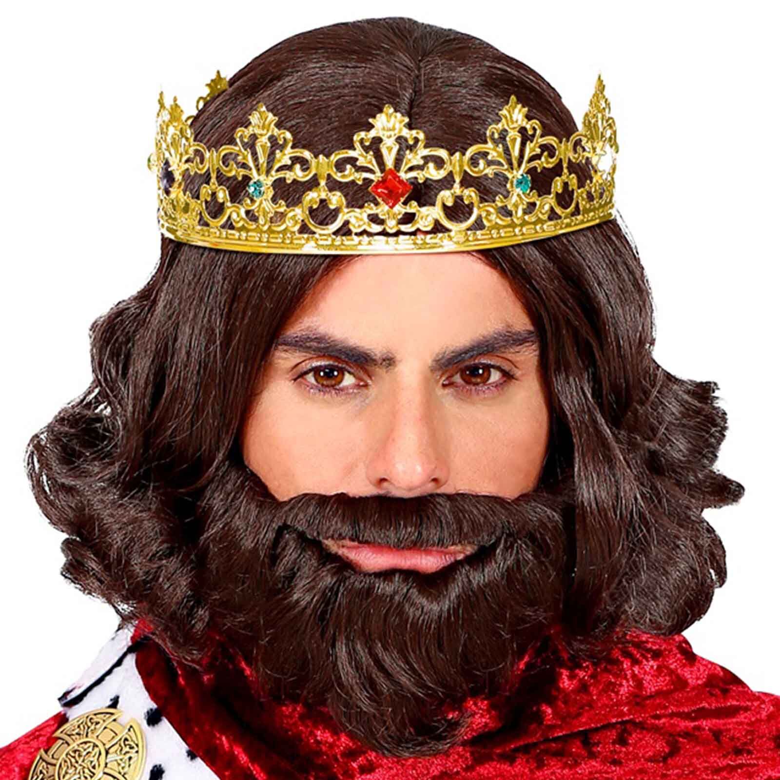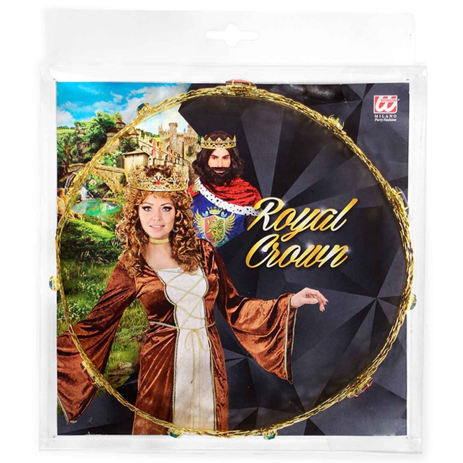 Shine bright like true royalty with this costume gold royal crown! Crafted from die-cut wire and adorned with coloured faux gems, this adult-sized crown is the ultimate finishing touch for any king or queen costume. Lightweight yet regal, it’s perfect for fancy dress parties, royal-themed events, costume contests, or even just ruling over your own living room kingdom.