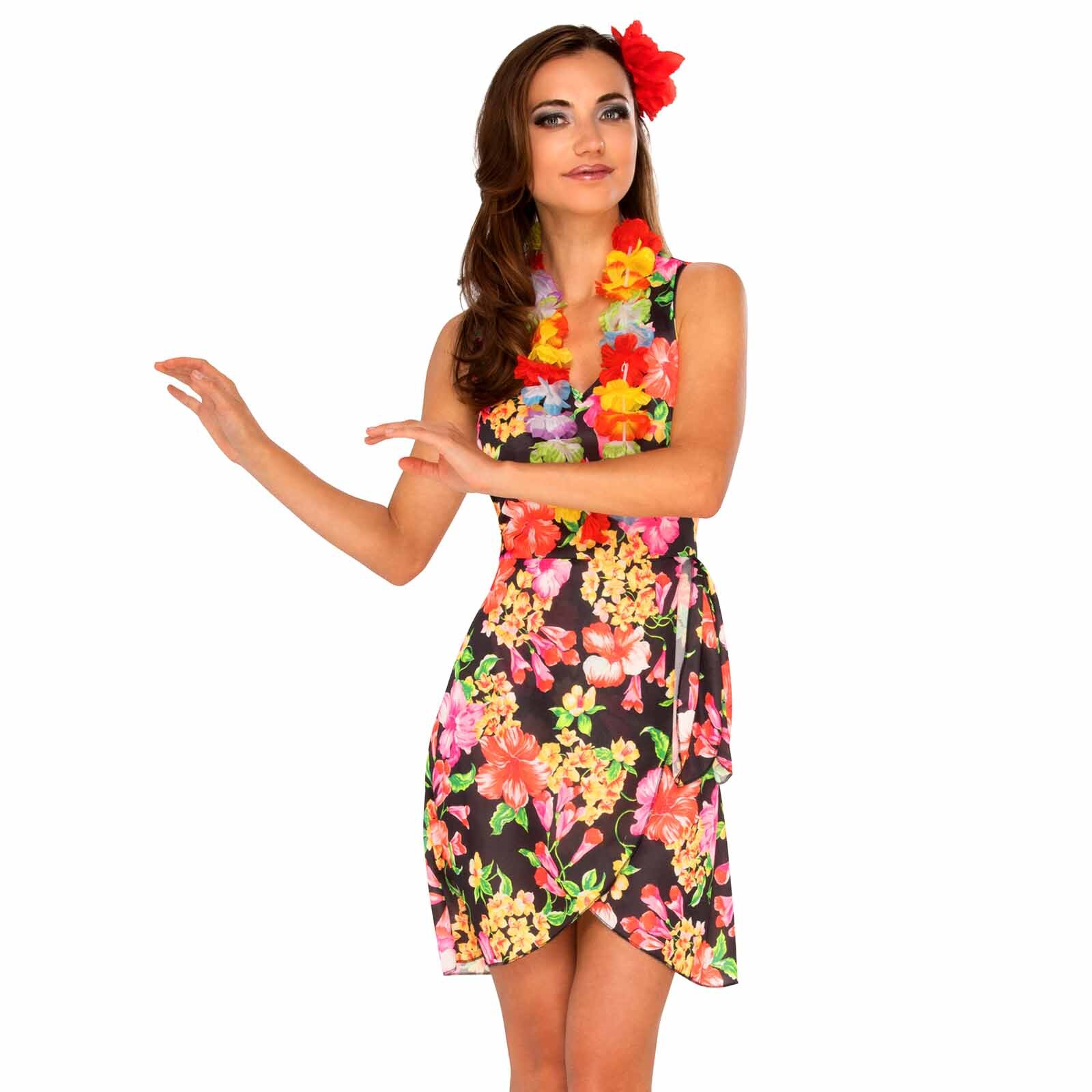 This cute dress and lei set provides just the right amount of colour to your Hawaiian themed outfit. Great for a tropical, beach or Hawaiian themed party or luau event.