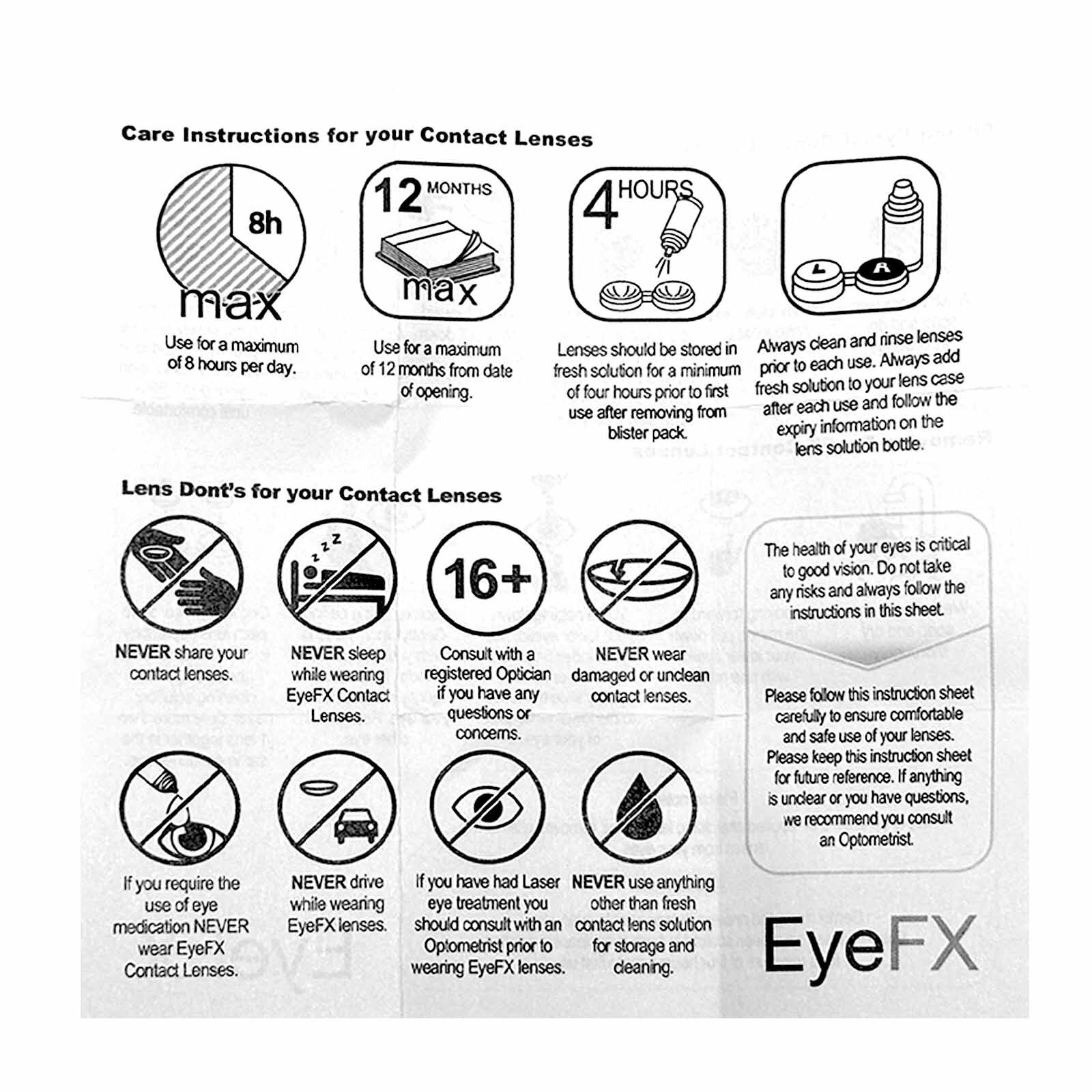 Please ensure that you follow the instructions for wear and storage completely. These are your eyes, which are super important, and we really want you to not only enjoy the look of the lenses but also to maintain the health of your eyes.