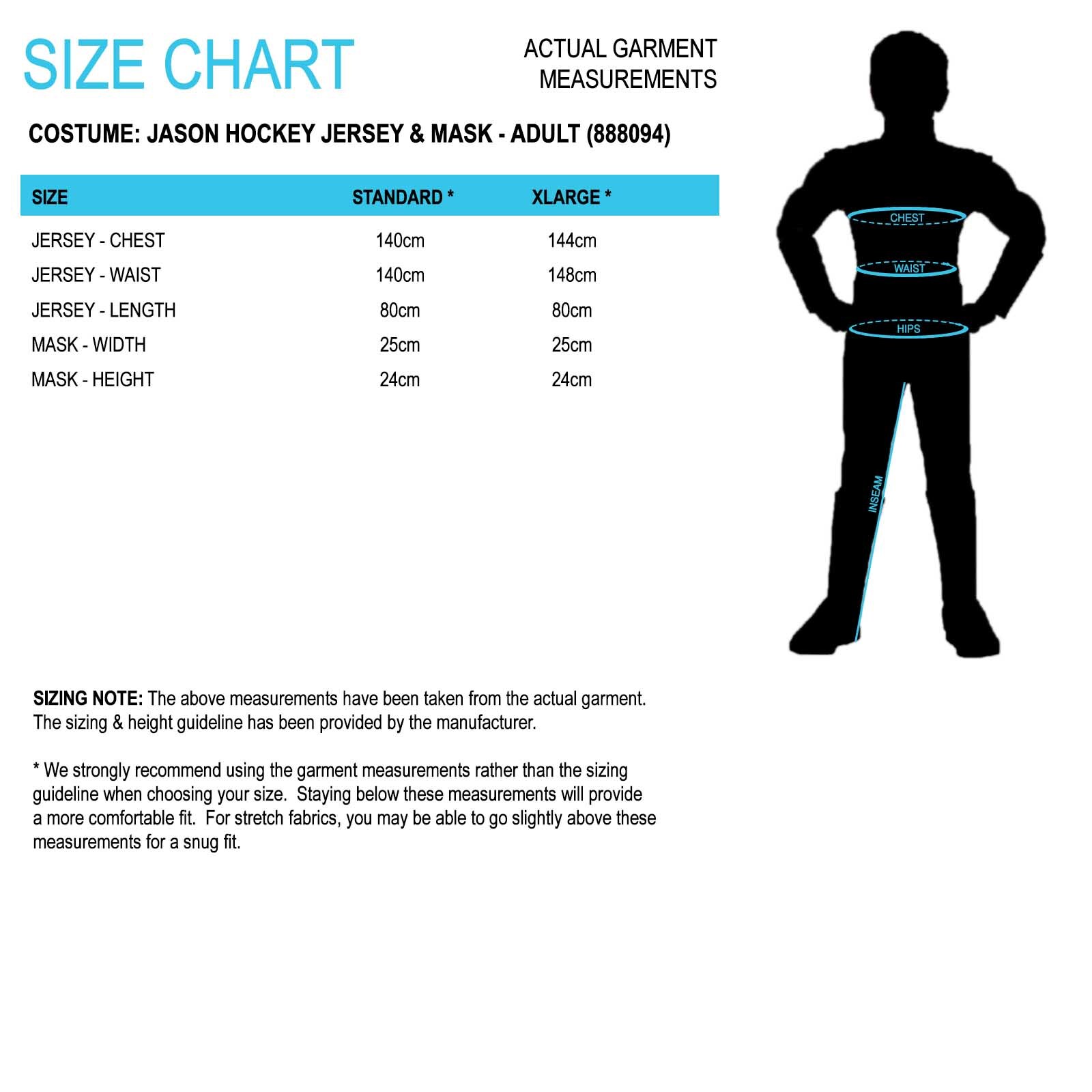 Transform into the iconic slasher, Jason Voohees, from the Friday the 13th movie franchise in this adult's costume kit. Whether you are going to a horror or movie themed party or a Halloween event, Jason is a fabulously sinister character that is the stuff of nightmares. This set includes a hockey jersey and mask.