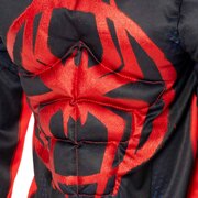 Jump into the Spider-Verse in this fabulous child's deluxe Miles Morales costume inspired by the movie, Spider-Man: Across the Spider-Verse. This version of the iconic Spider-Man character has the black suit with red spider logo on the front. Whether your Spidey enthusiast is swinging into action at a movie or superhero themed party, dazzling fans at a comic convention or just being a friendly neighbourhood Spider-Man, this costume is sure to impress.