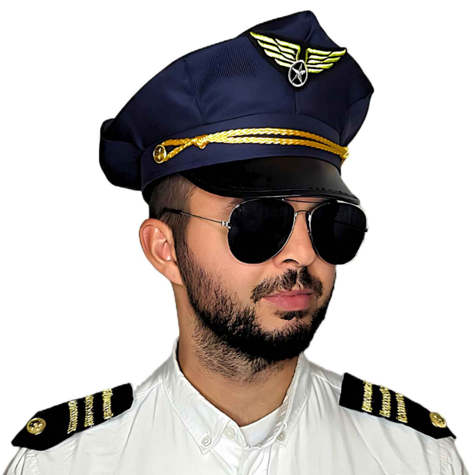 Whether you are captaining a jumbo jet or flying high at a uniform costume party, this classic navy blue pilot hat is the perfect finishing touch for your airline outfit. Pair it with aviator style glasses to make sure your look is cleared for 'take off'.