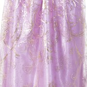 - Satin look pale purple underskirt with soft tulle overskirt adorned with gold print (print on front only)
