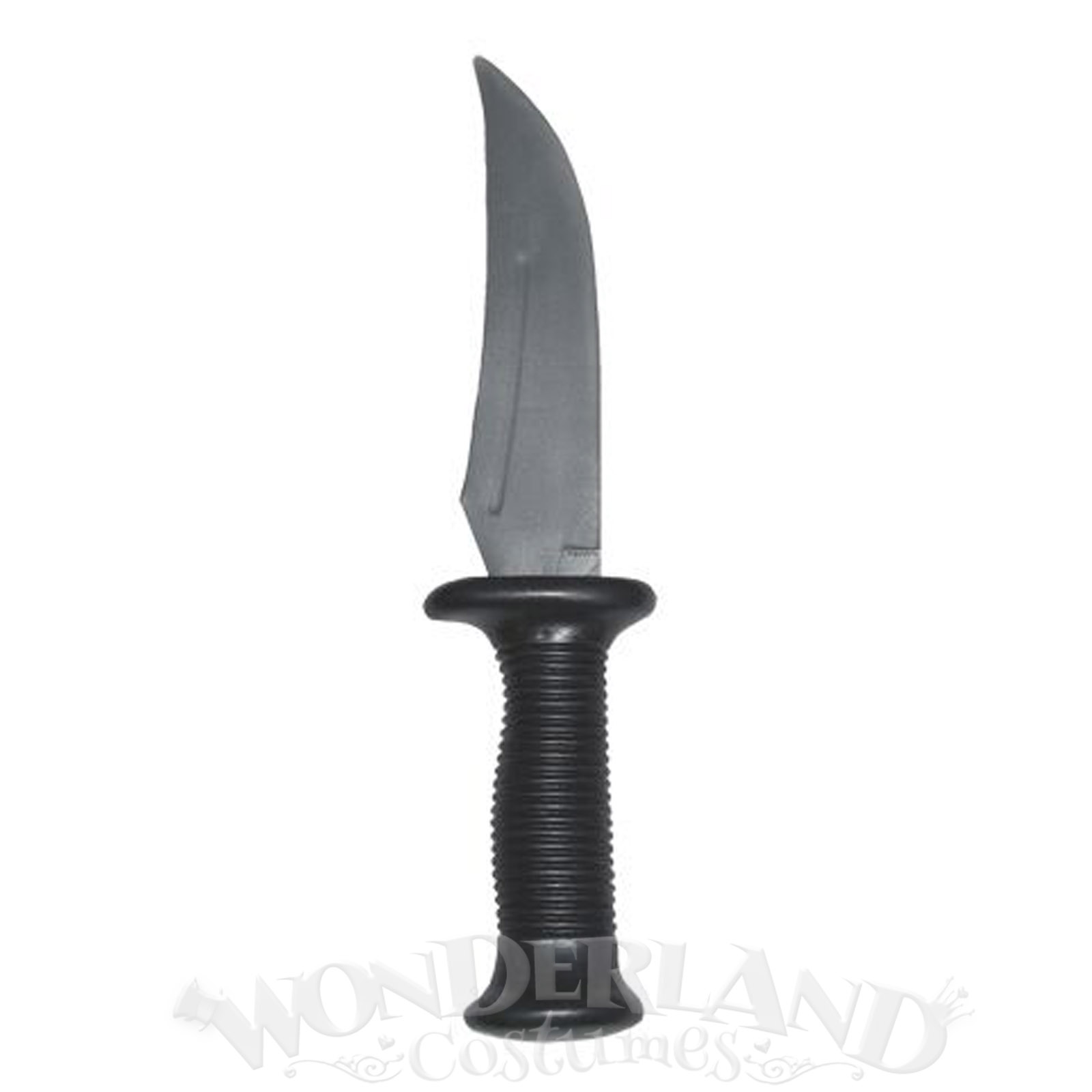 This costume prop knife has a black plastic handle with a flexible rubber silver painted blade. We think this would be perfect for a Crocodile Dundee or Rambo costume or for your next gruesome Halloween outfit (just add blood!).