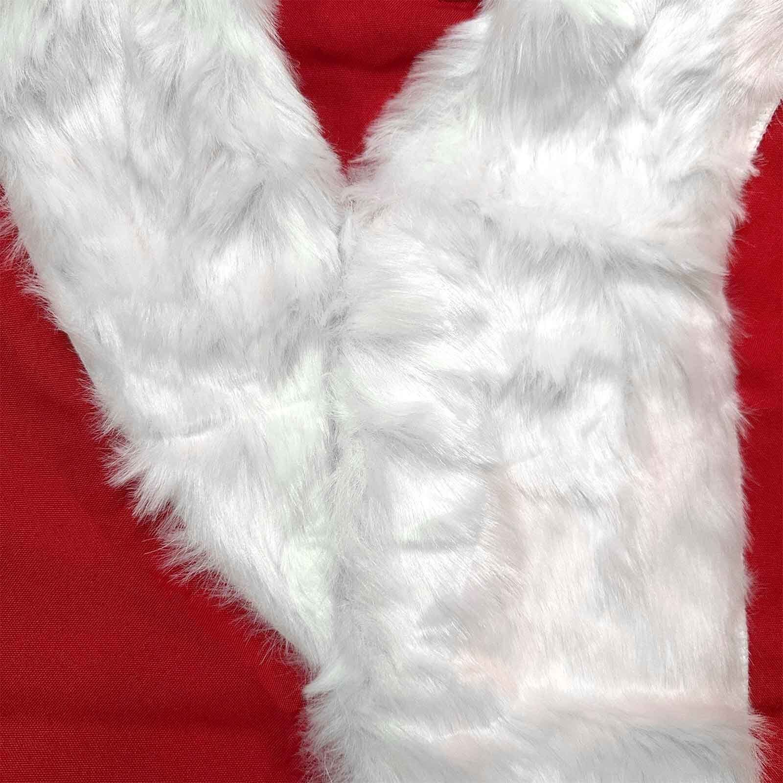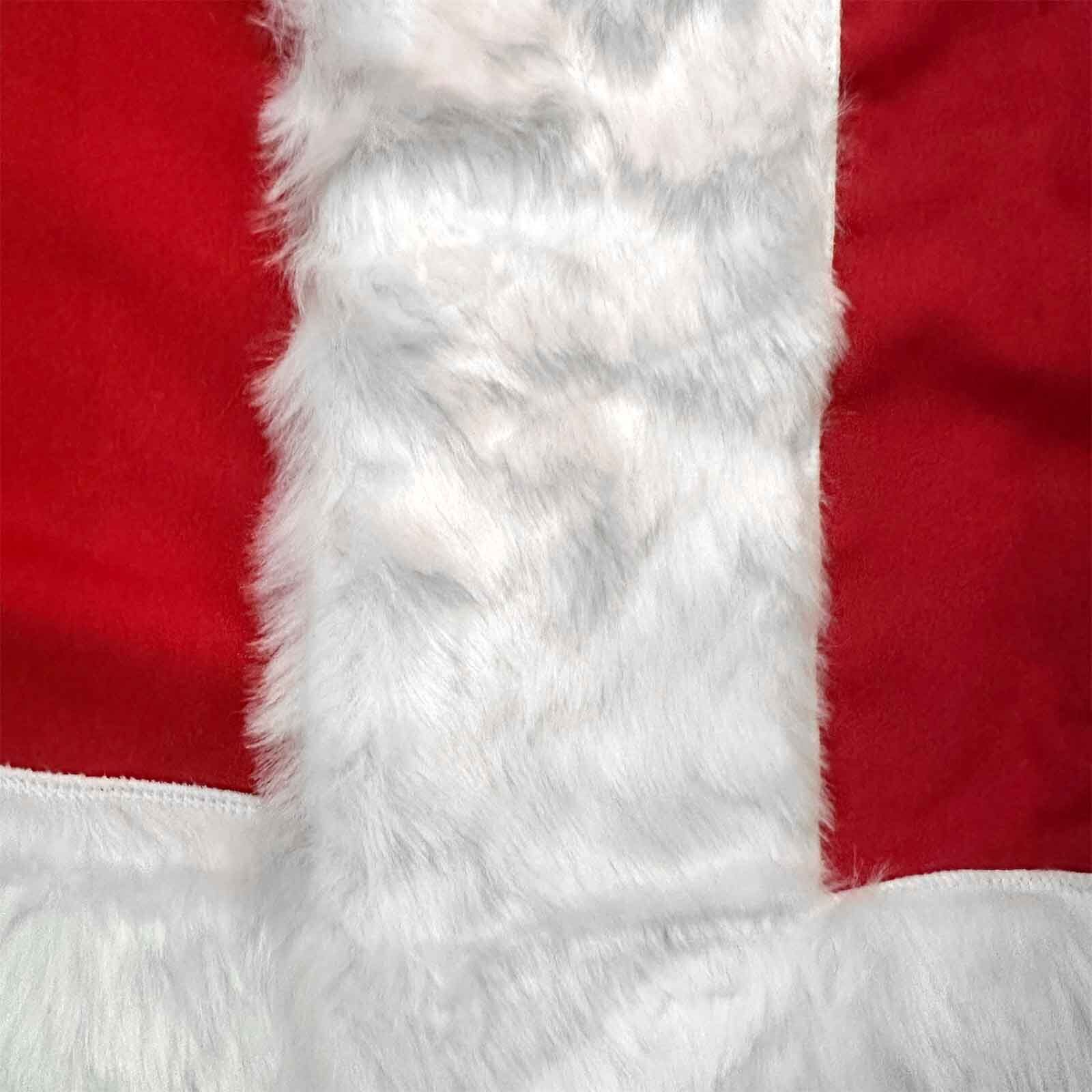 - Quality note: As is the case with many Santa Suits, the red colour from the main fabric in the suit can slightly run onto the white faux fur. This is generally very light and shouldn't impact usage but is noted.