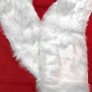 - Hat has a band of white faux fur around the bottom and enough width to accommodate a wig; good size white faux fur pom pom