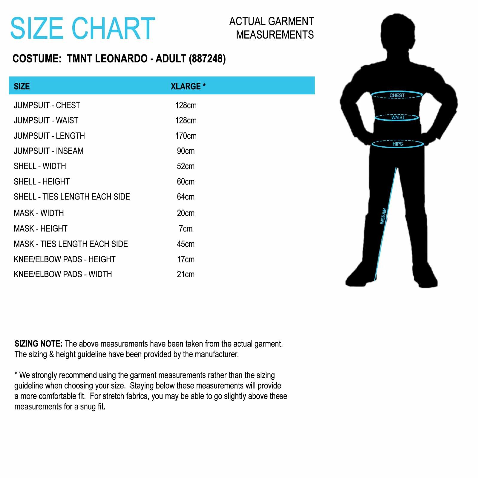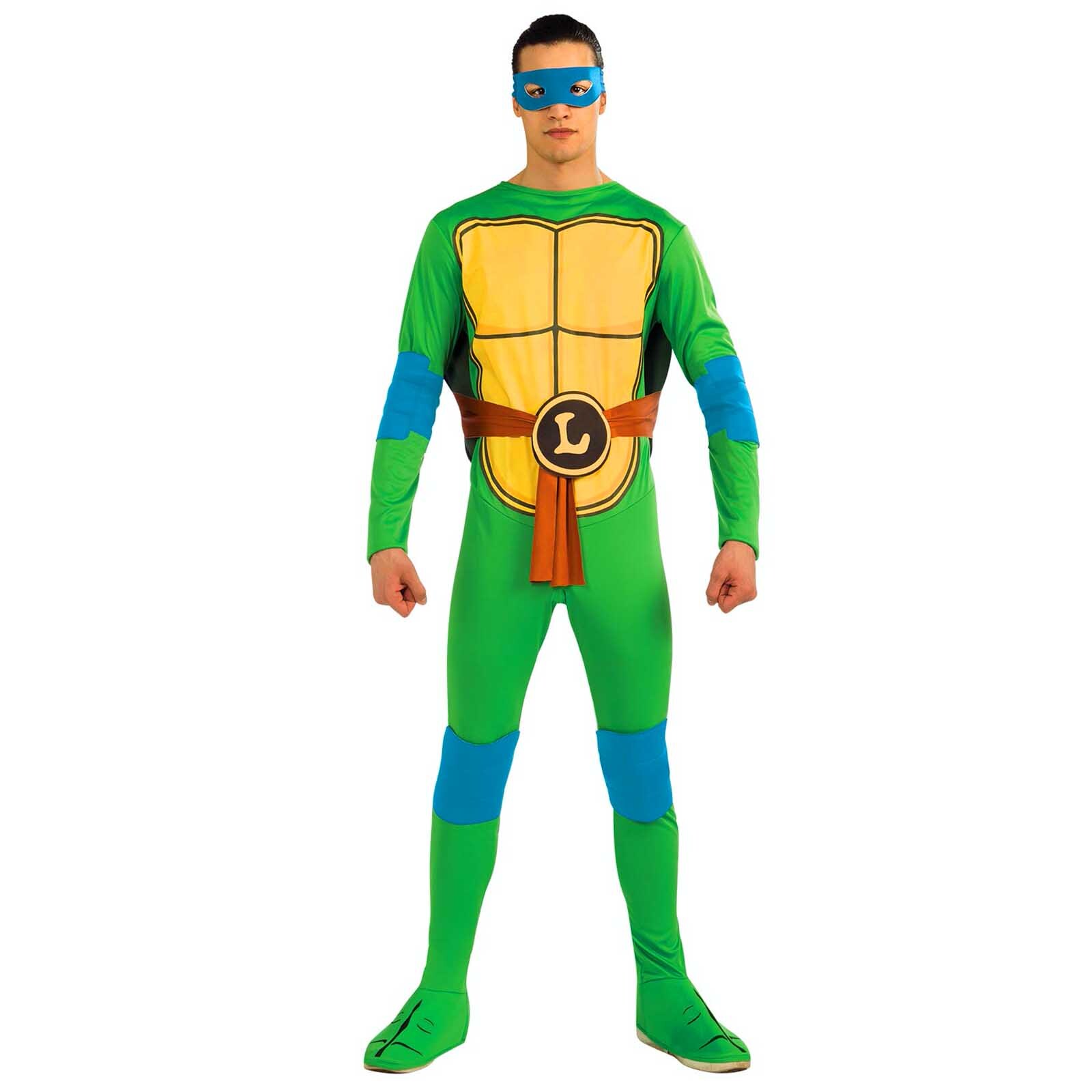 Cowabunga, Dude! You are going to have so much fun dressing up as Leonardo, the blue Teenage Mutant Ninja Turtle, in this adult's costume. Join with some friends to make the whole group with Raphael, Michelangelo and Donatello. Such a great costume for a movie or 1980s themed party.