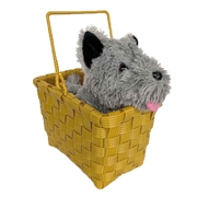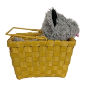 This is the perfect accessory to finish off your Dorothy costume from the Wizard of Oz. This small sized basket and plush dog set is a great size for little people but also for an adult wanting a smaller prop (please see measurements below). The basket is a tan yellow plastic in a woven shape with handle. Toto, the little plush dog included, is made from grey fur with plastic eyes and nose. This is an officially licensed Wizard of Oz product.