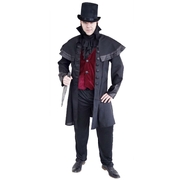 Sink your teeth into the night with this dashing Victorian Vampire Costume Set for adults! This hauntingly handsome ensemble includes a long black jacket with an attached deep red velvet vest front, a dramatic jabot, and a matching capelet that screams “immortal elegance.” Perfect for any creature of the night who prefers sophistication with their scare.