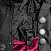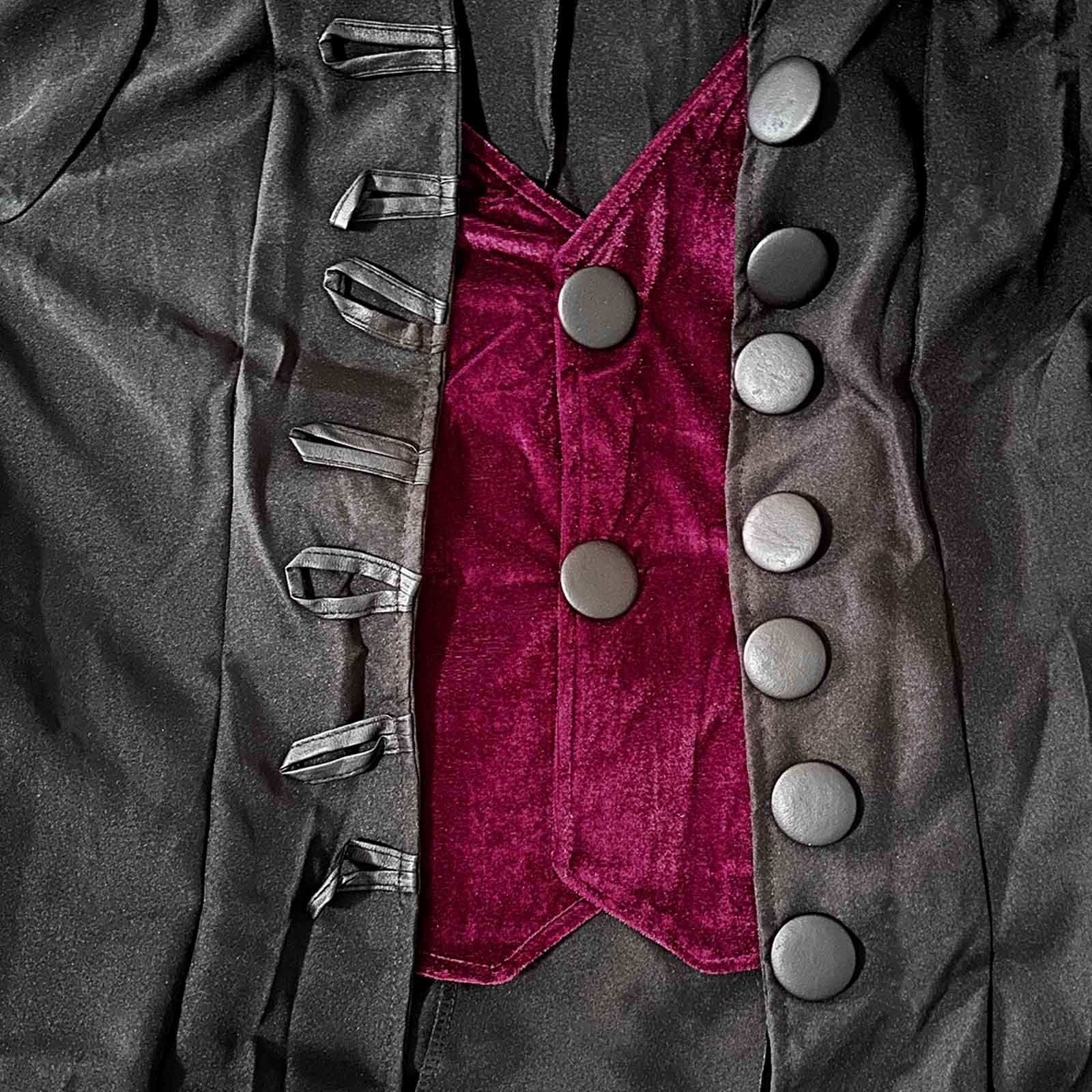 - Deep red velvet vest front is attached to the jacket on the inner sides (the colour of the vest is like a wine colour as the red has a slightly pink tone)