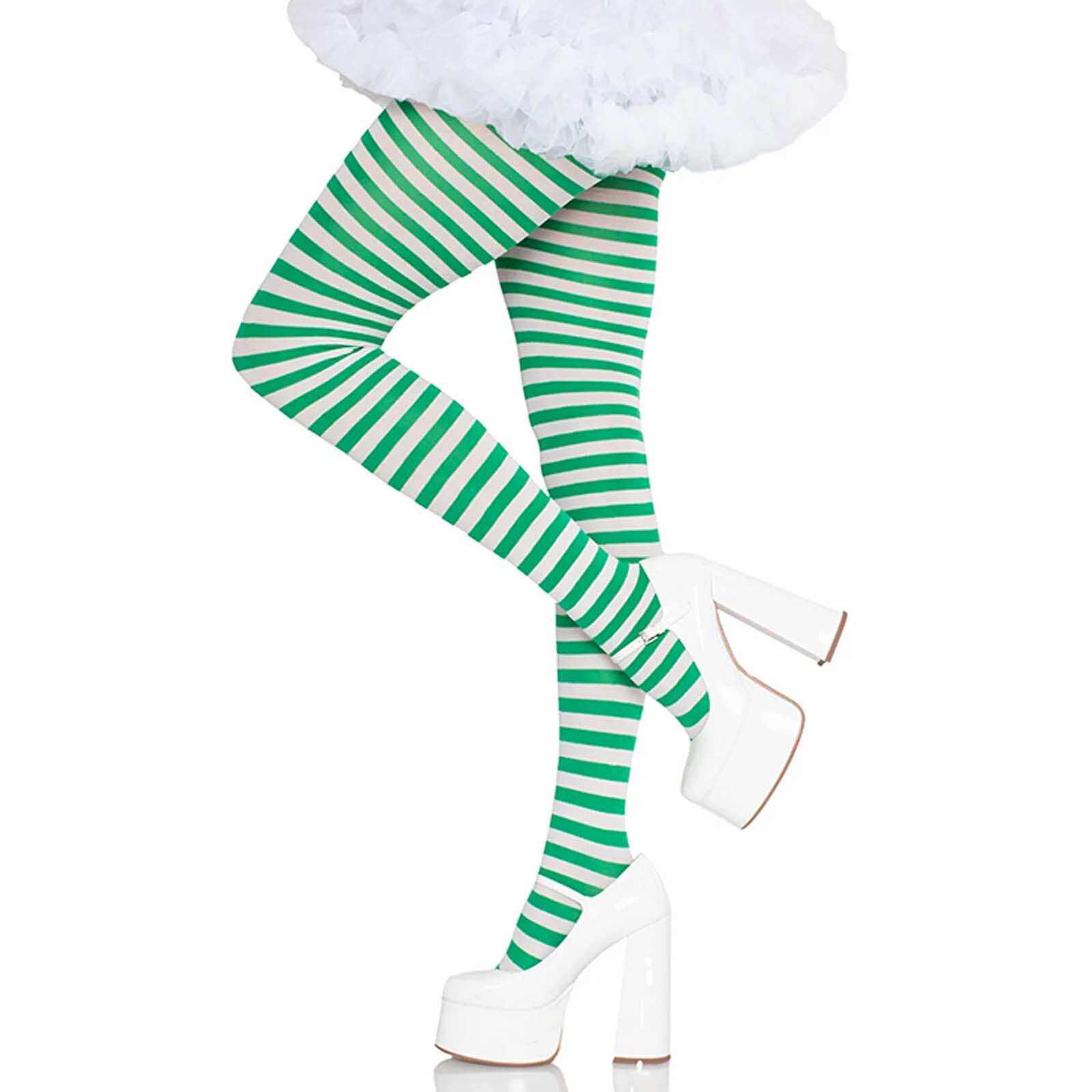Featuring white and green stripes and an opaque look, these striped tights are perfect for a Christmas, St Patrick's Day or Book Week costume. Easy to style and full of character, these adult striped tights are a versatile costume accessory that bring fun, charm and a fresh burst of colour to any dress up look or themed event. Made from 62% nylon/38% polyester with a 70 denier, these tights have an opaque look.