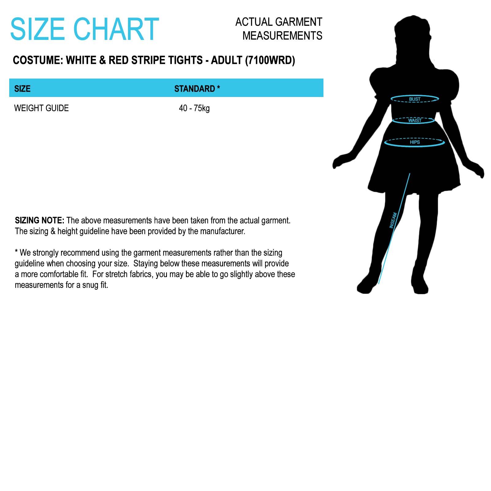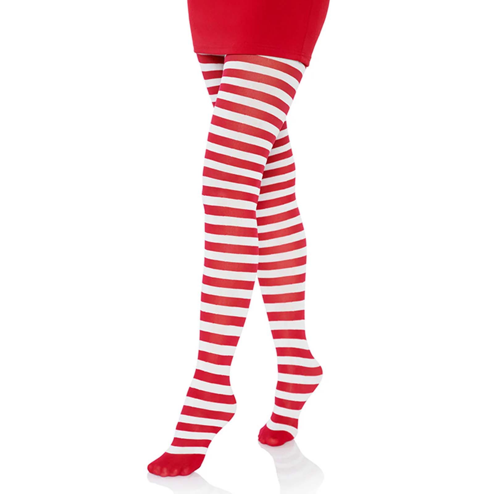 Featuring white and red stripes and an opaque look, these striped tights are perfect for a Christmas or Book Week costume. Easy to style and full of character, these adult striped tights are a versatile costume accessory that bring fun, charm and a fresh burst of colour to any dress up look or themed event. Made from 62% nylon/38% polyester with a 70 denier, these tights have an opaque look.