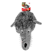 - Plush hat made from grey imitation fur - shorter monotone fabric used for the face, mouth and ears; mottled darker and lighter grey longer fur is used for the 'hair' section