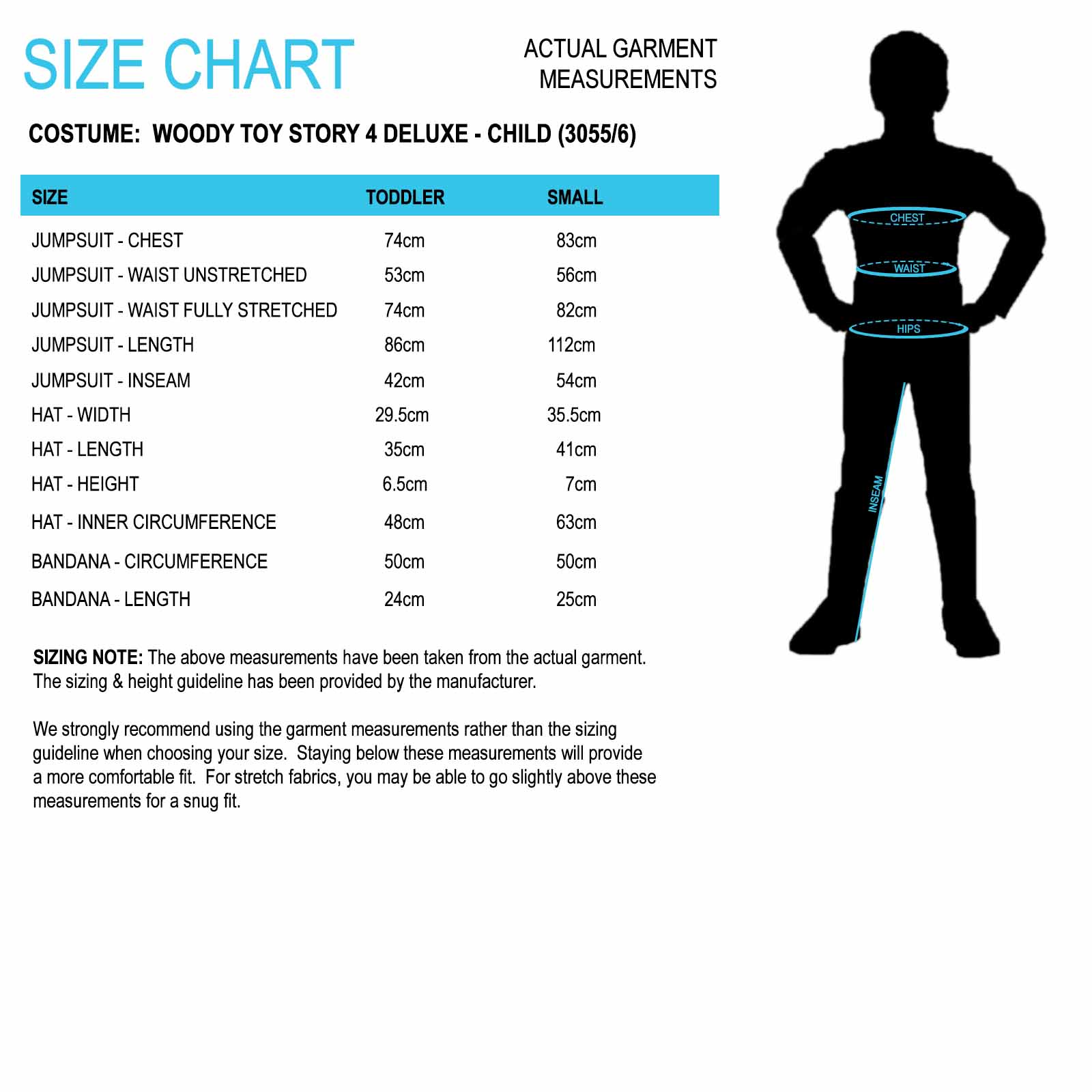 Quality and size note: We would like to note that the hat included in the set is plain brown felt which only vaguely resembles the one worn by Woody in the movies. We recommend all buyers consider the hat measurements and quality before purchasing as the hat, in particular the Small child size, is quite large for smaller children. Please also consider the garment measurements included in the size chart to determine the correct sizing for your child as the sizing is quite generous.