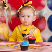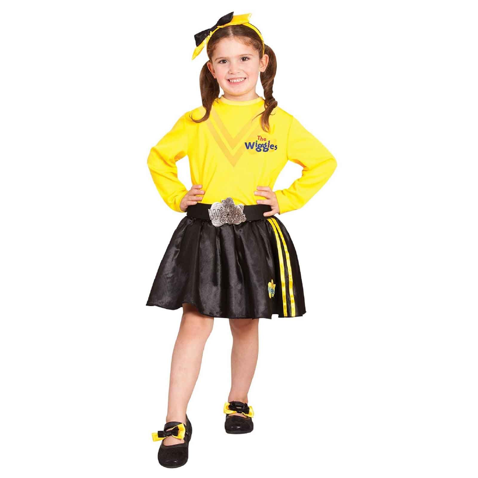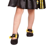 This set with a headband and shoes bows are the perfect addition to a Yellow Wiggle costume. Inspired by the outfit worn by Emma Wiggle, this set includes two shoe bows per pack with a double bow (one in gold yellow satin fabric and a top bow in black satin ribbon) attached to a loop of black elastic to go around the shoe. The fabric covered headband has a touch of glitter to add sparkle and a double bow (in gold yellow satin fabric as the bottom bow and a top bow in black satin fabric). This is a licensed The Wiggles product.